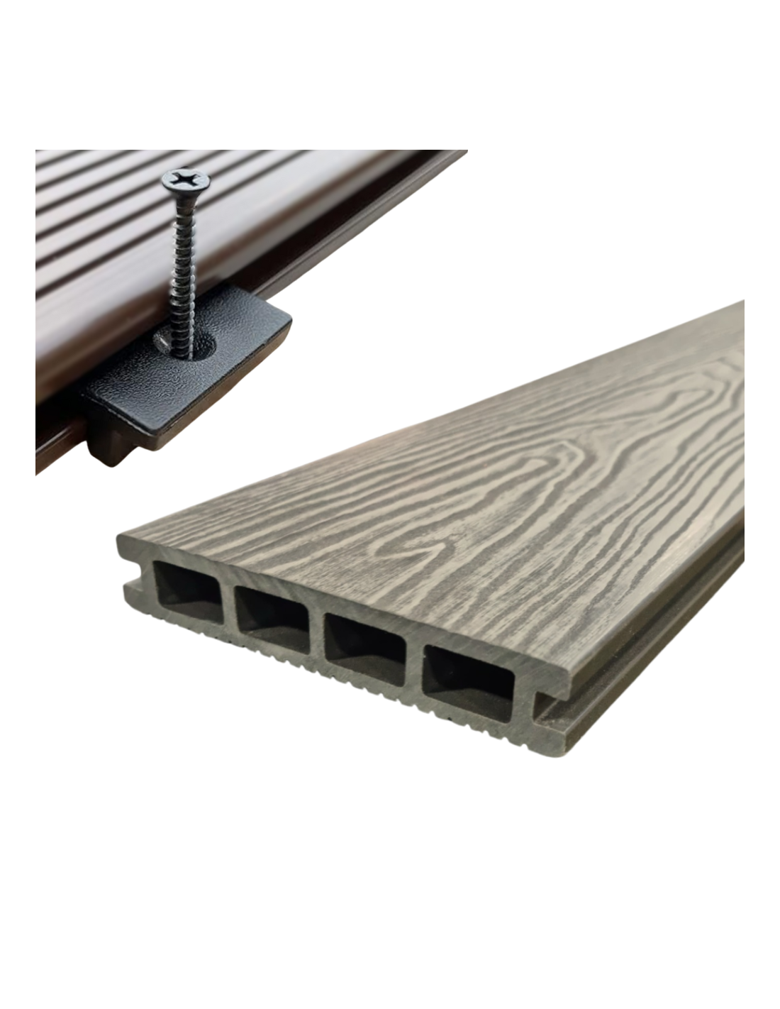 WPS (Wood Plastic Composite) de 4* generación es un compuesto de madera y plástico con una cobertura de 360*, muy resistente a las condiciones de exterior. Nuestros productos tienen textura y aspecto similar a la madera, pero con mayor durabilidad y no requieren mantenimiento.